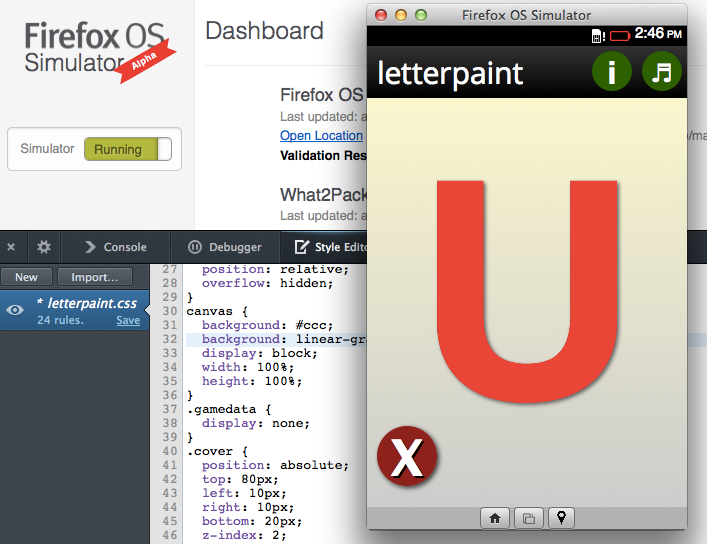 /webapp.manifesta la URL del Fiddle y pega el enlace en el simulador de Firefox OS para instalar la aplicación - También puedes agregar